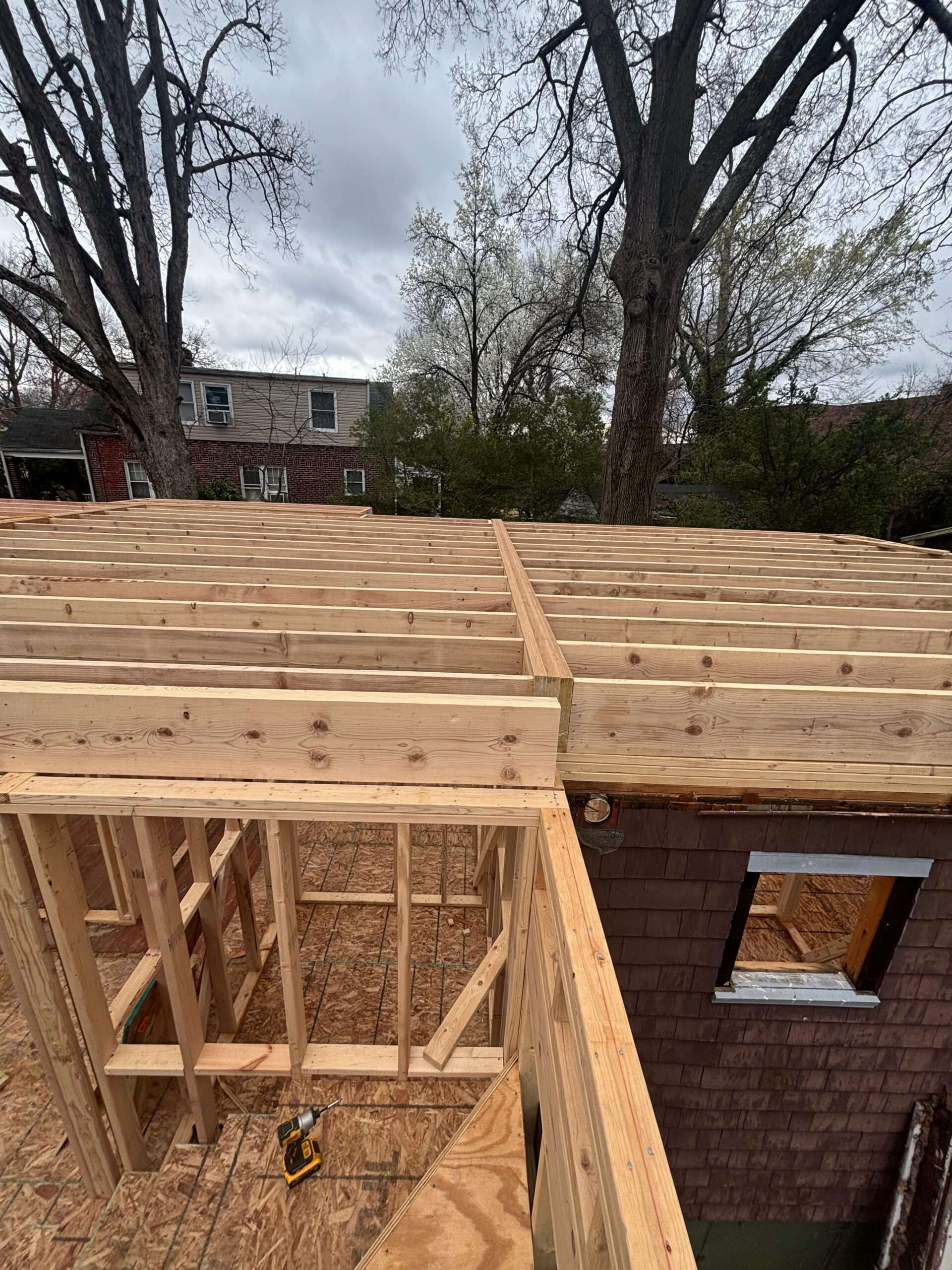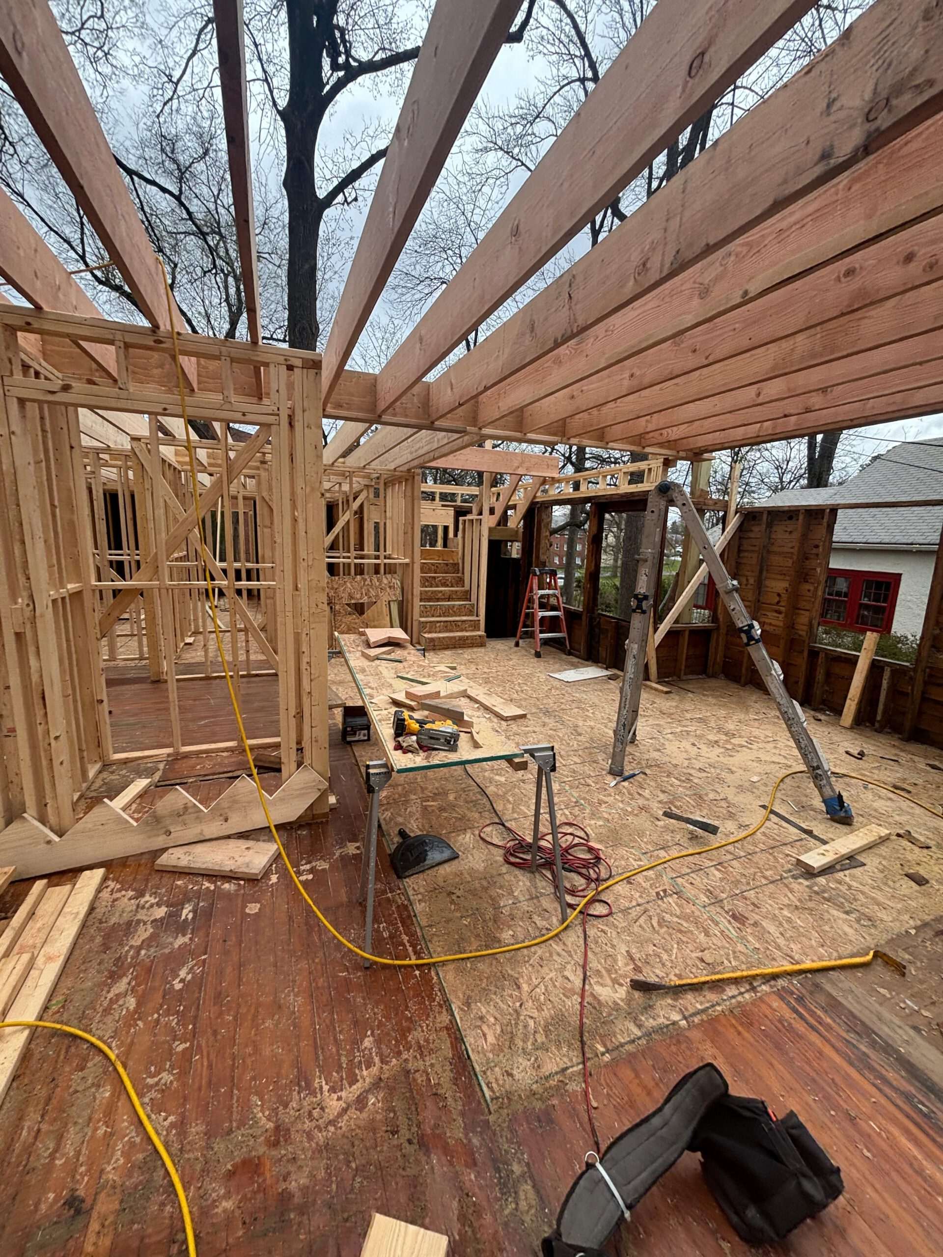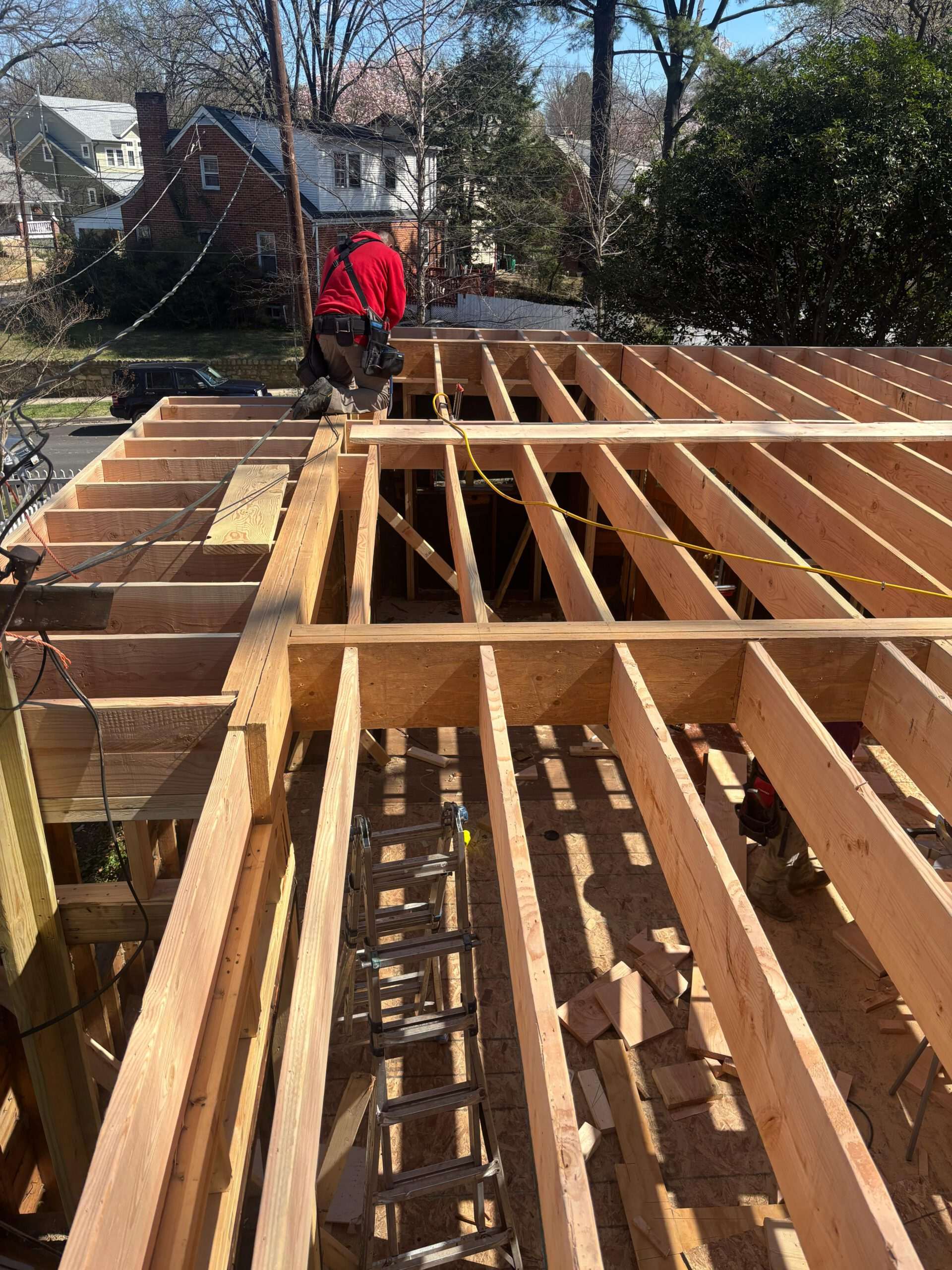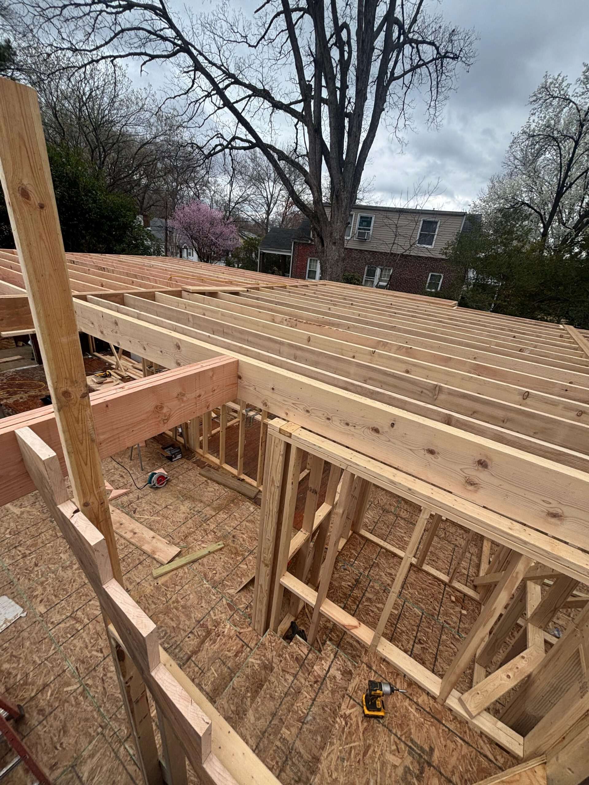 Browse recently completed framing and structural rough-in work across Northern Virginia additions and pop-ups, new walls and openings, second-story expansions, and new shells where the skeleton has to be square, plumb, and built for real loads. The photos below are real Potts Brothers job sites: straight plates and studs, engineered beams and headers where the plan calls for it, shear and tie-ins at existing structure, and sheathing that gets the building weather-tight before insulation and finishes. Use the gallery to see how we build the structure that everything else relies on; when you’re ready, we’ll align layout, engineering, and schedule to your project.