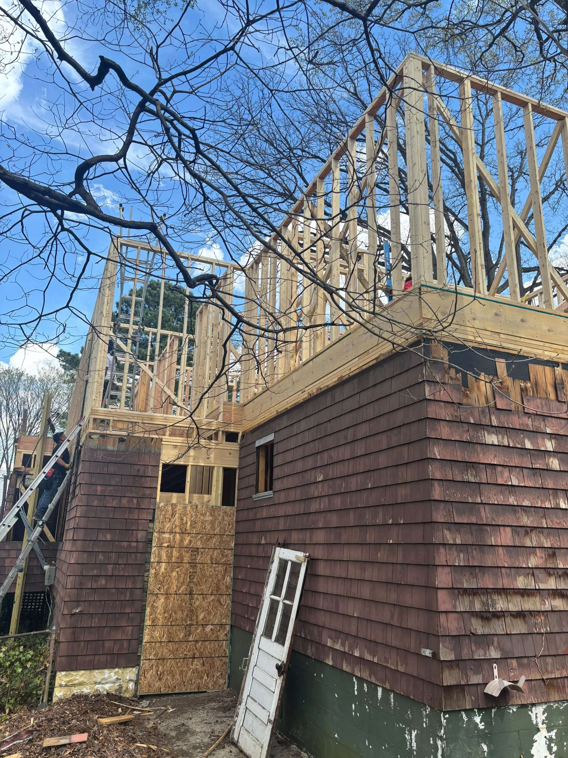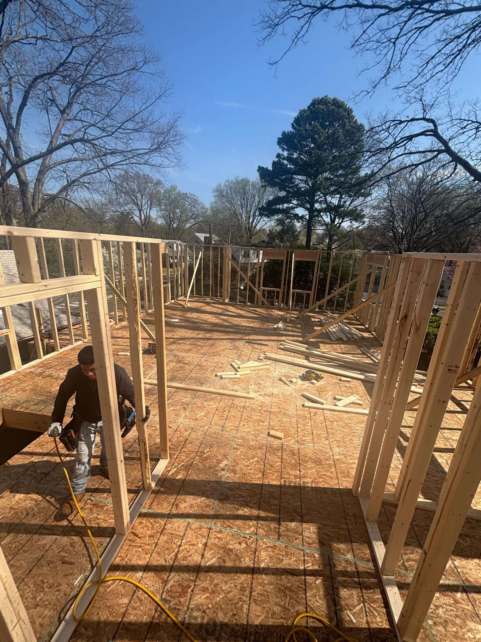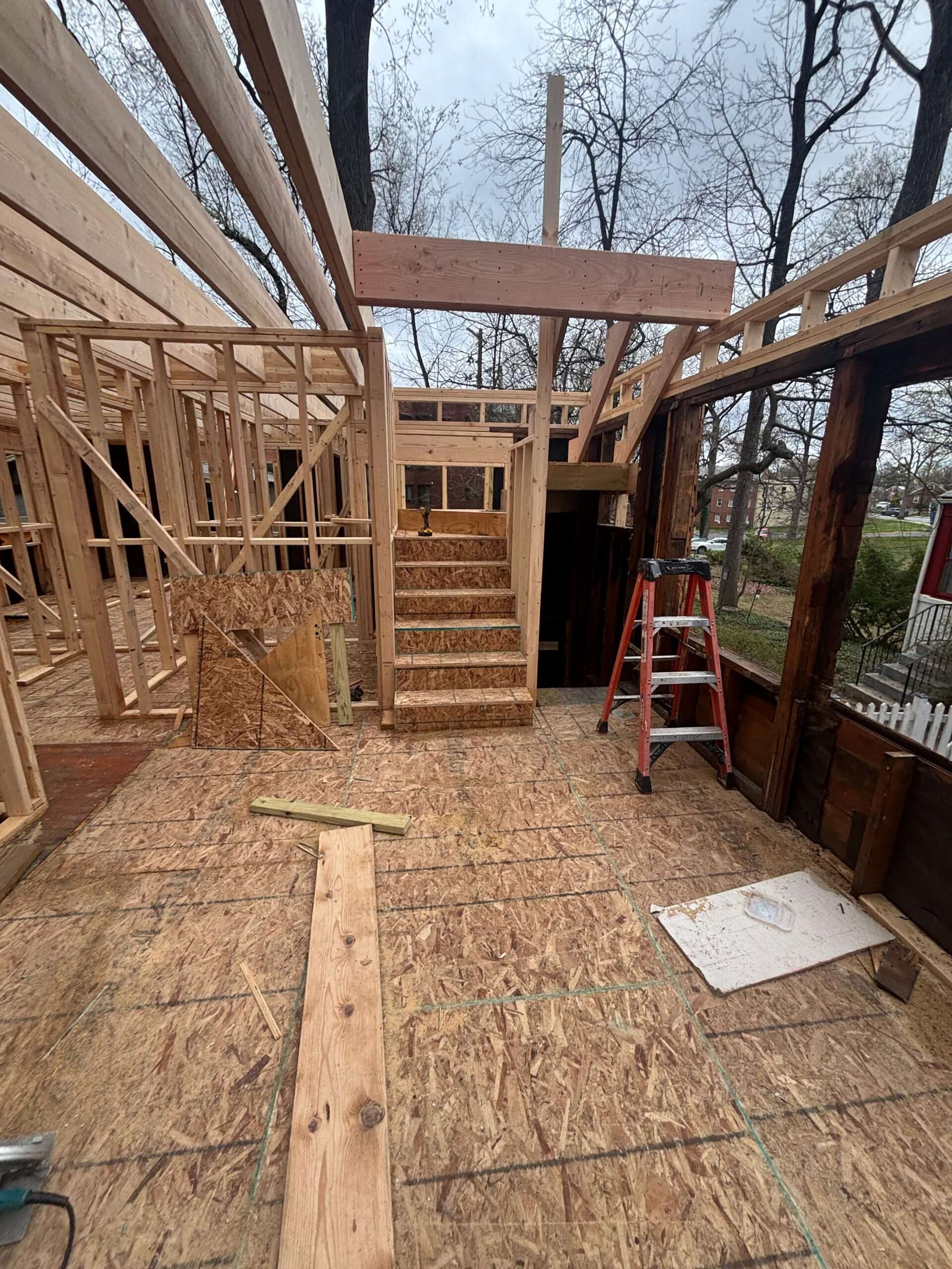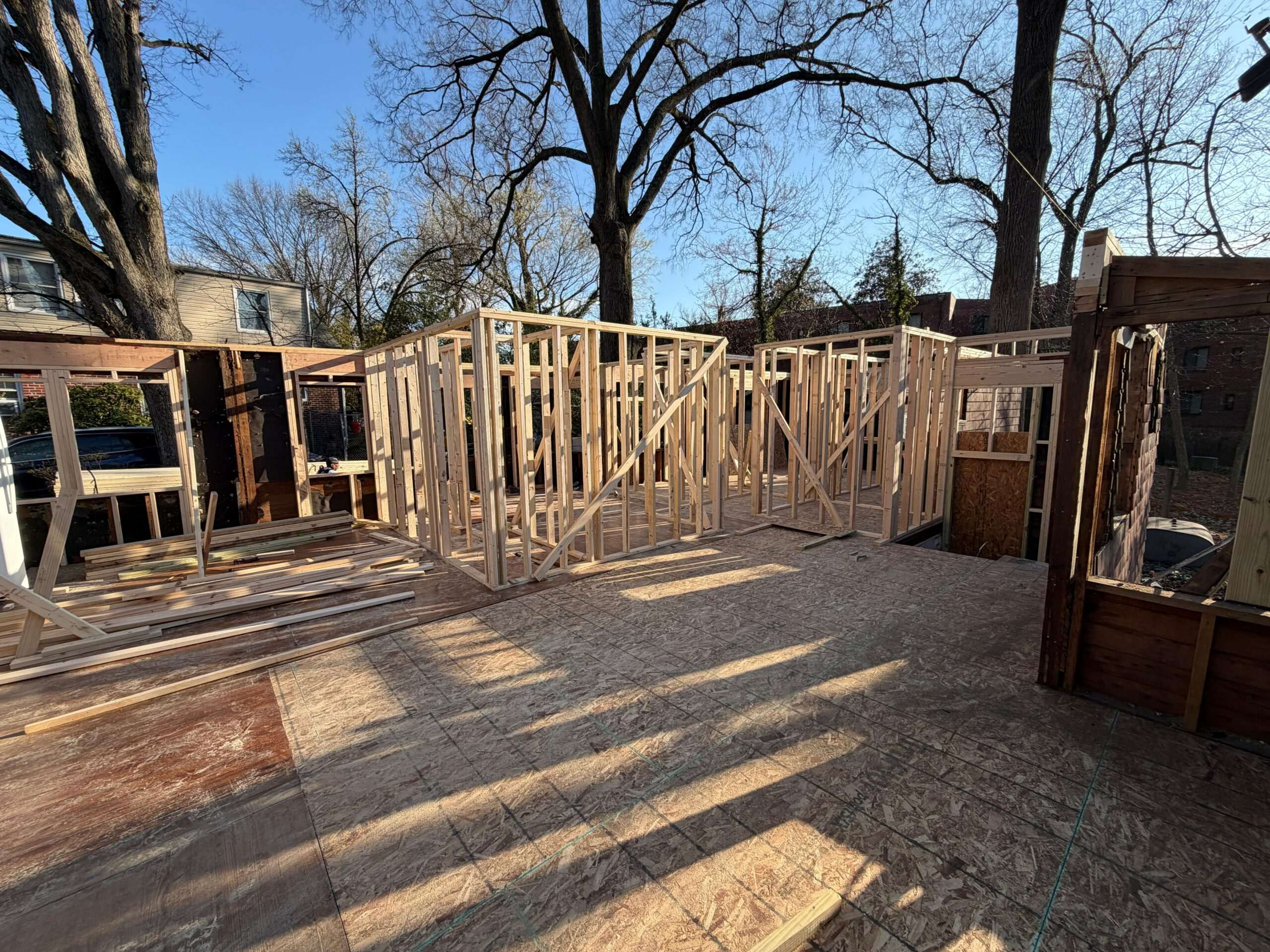Browse recently completed framing and structural rough-in work across Northern Virginia additions and pop-ups, new walls and openings, second-story expansions, and new shells where the skeleton has to be square, plumb, and built for real loads. The photos below are real Potts Brothers job sites: straight plates and studs, engineered beams and headers where the plan calls for it, shear and tie-ins at existing structure, and sheathing that gets the building weather-tight before insulation and finishes. Use the gallery to see how we build the structure that everything else relies on; when you’re ready, we’ll align layout, engineering, and schedule to your project.